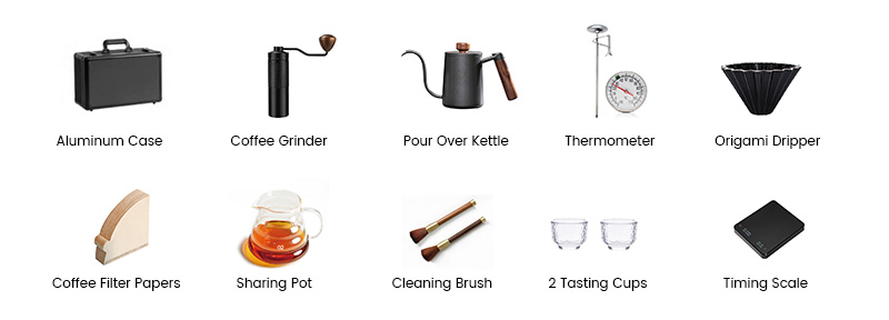 Outdoor Hand Drip Coffee Maker Set - Aluminum Travel Case, Hand Grinder, Brewing Kit